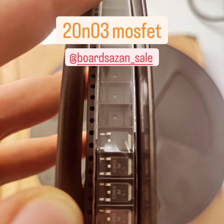 ماسفت (MOSFET) 20n03 یک ترانزیستور اثر میدانی (FET) است که معمولاً در مدارهای الکترونیکی برای کنترل جریان و ولتاژ استفاده میشود. این قطعه به دلیل مقاومت کم در حالت روشن (Rds(on)) و توانایی تحمل جریان نسبتاً بالا، در کاربردهایی مانند منابع تغذیه، درایورهای موتور و مدارهای سوئیچینگ محبوب است. تا کنون این قطعه توسط بردسازان بیش از ۱۰۰۰۰۰ عدد مورد استفاده و تست قرار گرفته و کیفیت بسیار بالایی دارد.